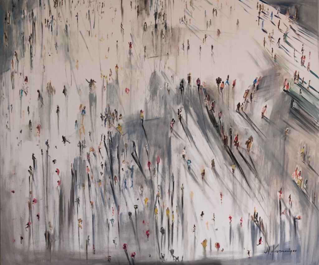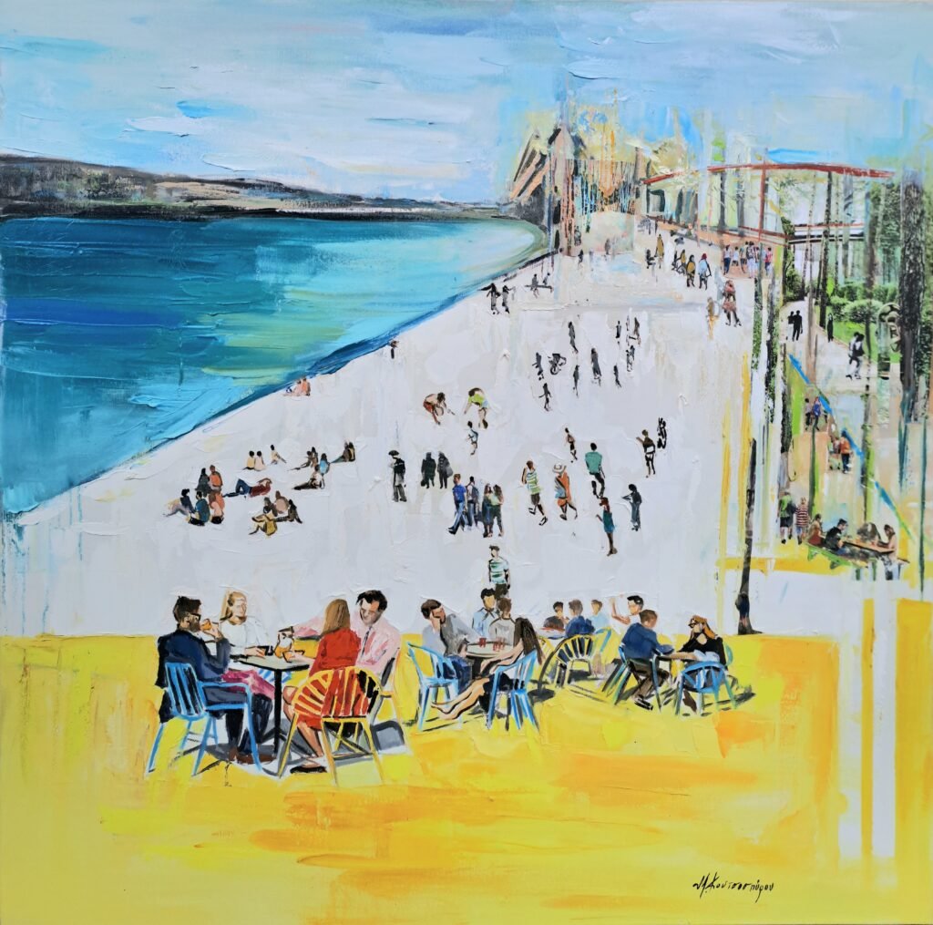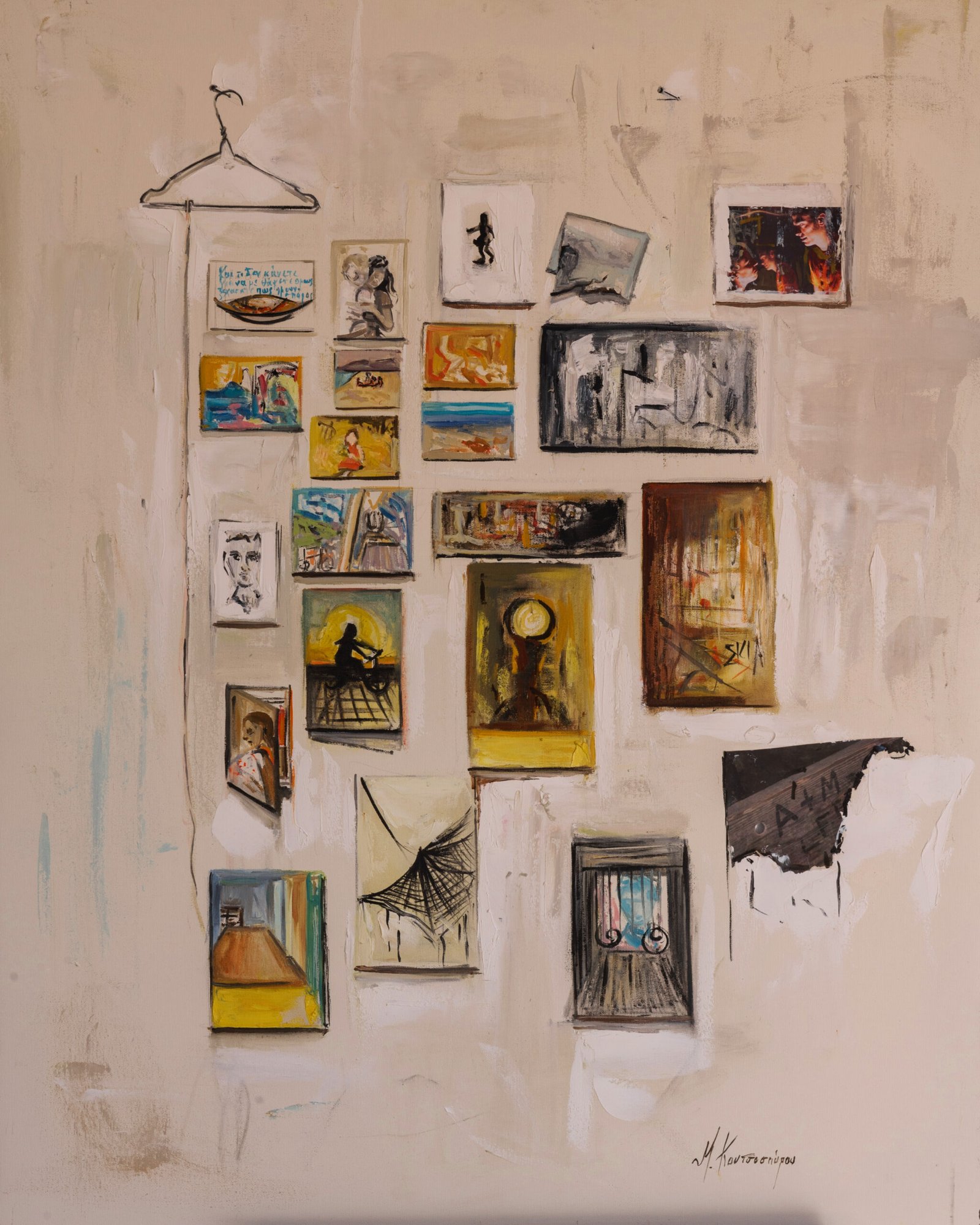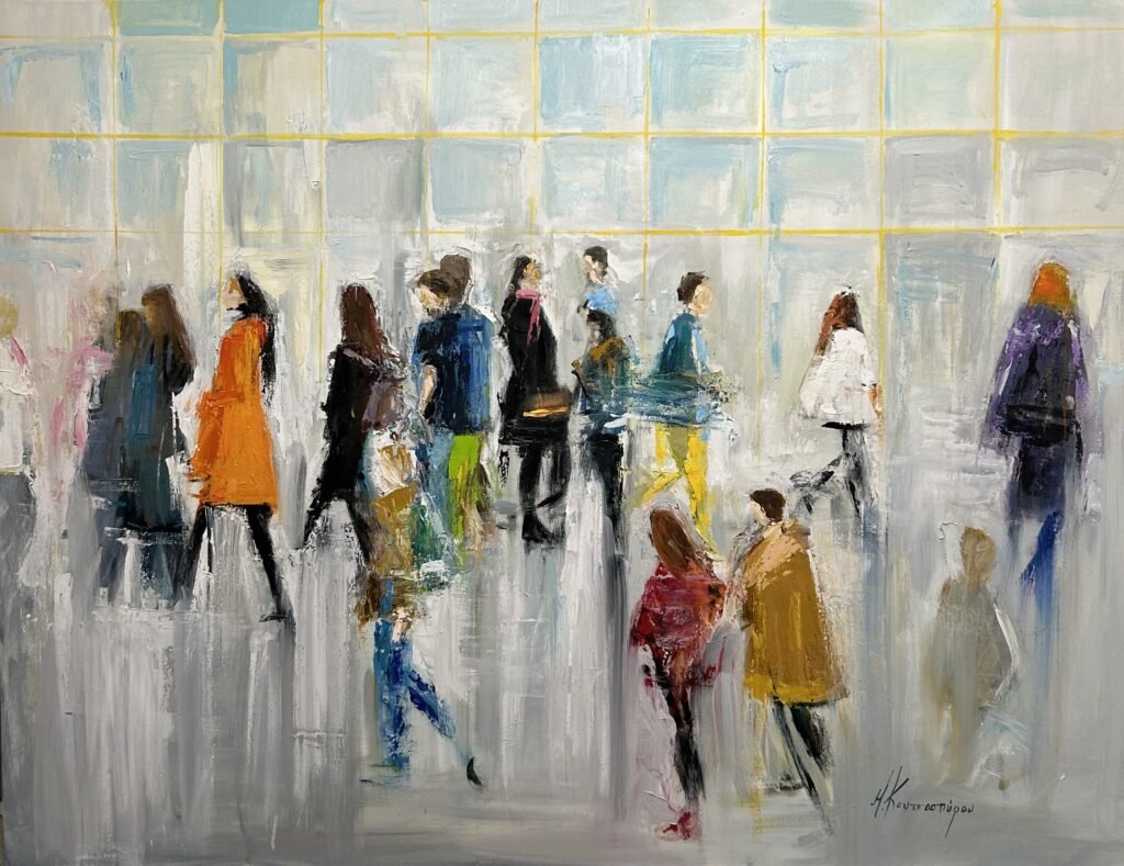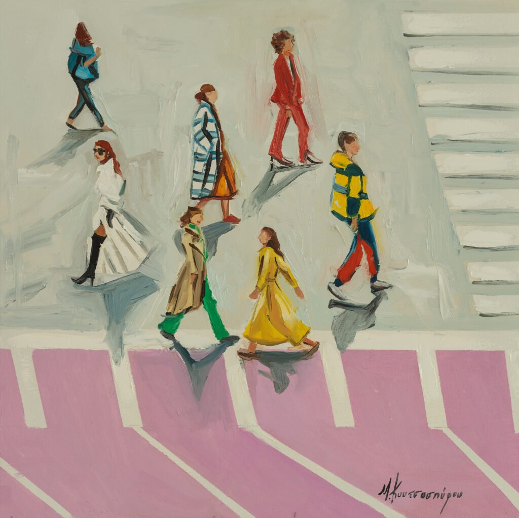 Ανθρώπινες φιγούρες, άντρες, γυναίκες, παιδιά, τοποθετημένες στα περιβάλλοντα που ανήκουν, σε αστικά ή φυσικά περιβάλλοντα, σε περιβάλλοντα φτιαγμένα από μύθο κι ιστορία, σουρεαλισμό ή και ρομαντισμό ακόμα, γίνονται οι πρωταγωνιστές ενός ευφάνταστου ζωγραφικού θιάσου που για το τέλος σου αφήνει μια αίσθηση απαλή, σαν χάδι, μιας εποχής άλλης που την φιλοξενούμε μέσα μας• πολύτιμη βαθιά σαν νοσταλγία."